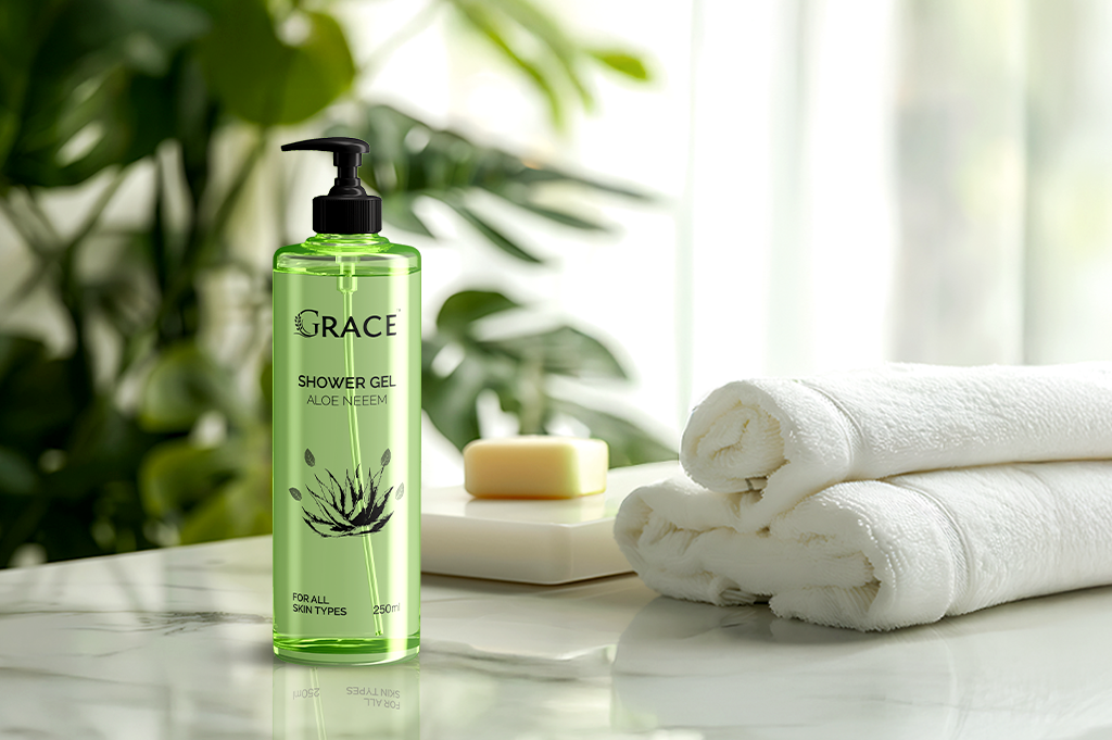 Infused with natural goodness, the Aloe Neem Shower Gel from Grace Amenities is your daily dose of deep cleansing and gentle care. Aloe vera hydrates and soothes the skin, while neem, known for its antibacterial properties, helps purify and protect. Together, they leave your skin feeling clean, calm, and naturally refreshed.